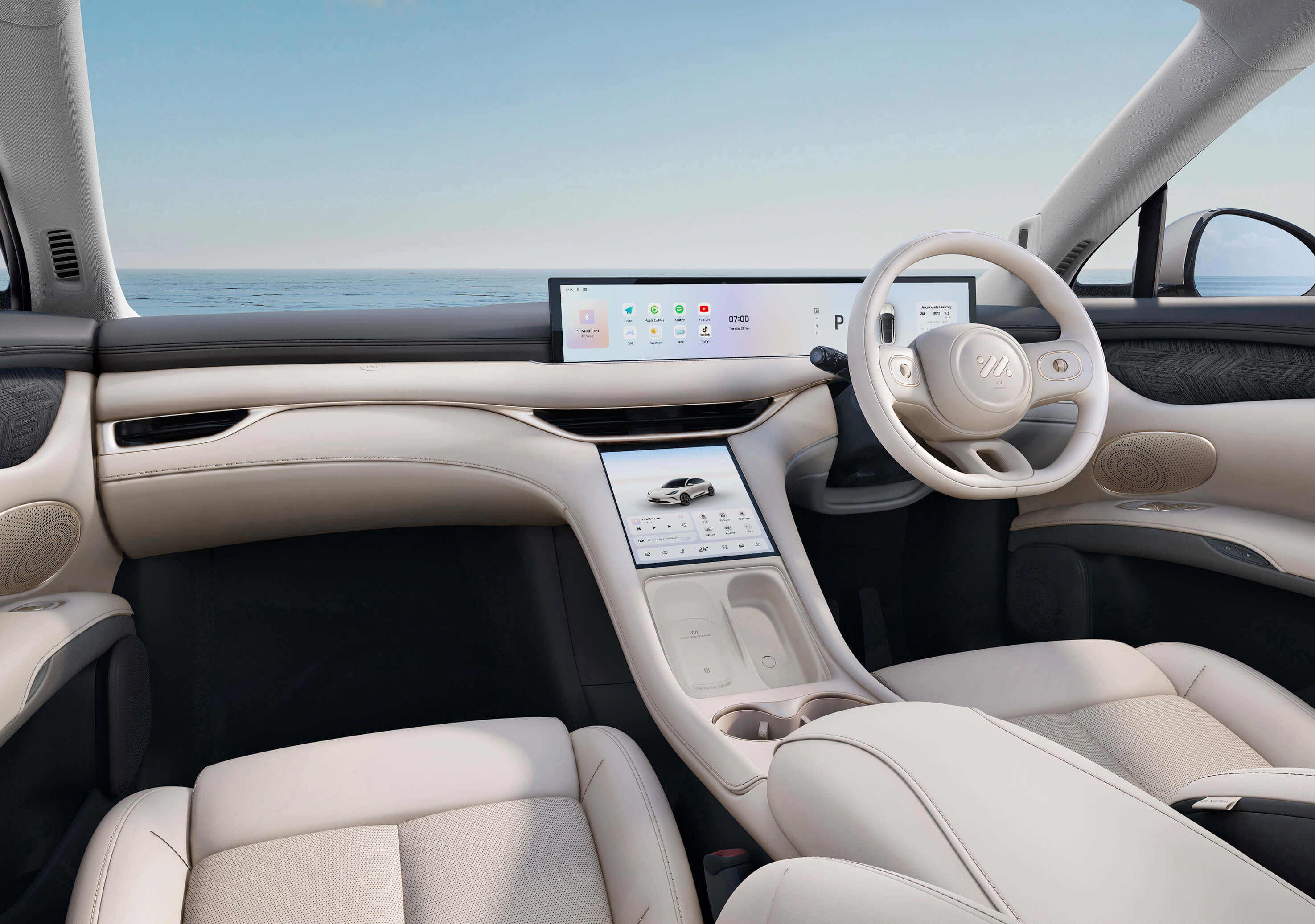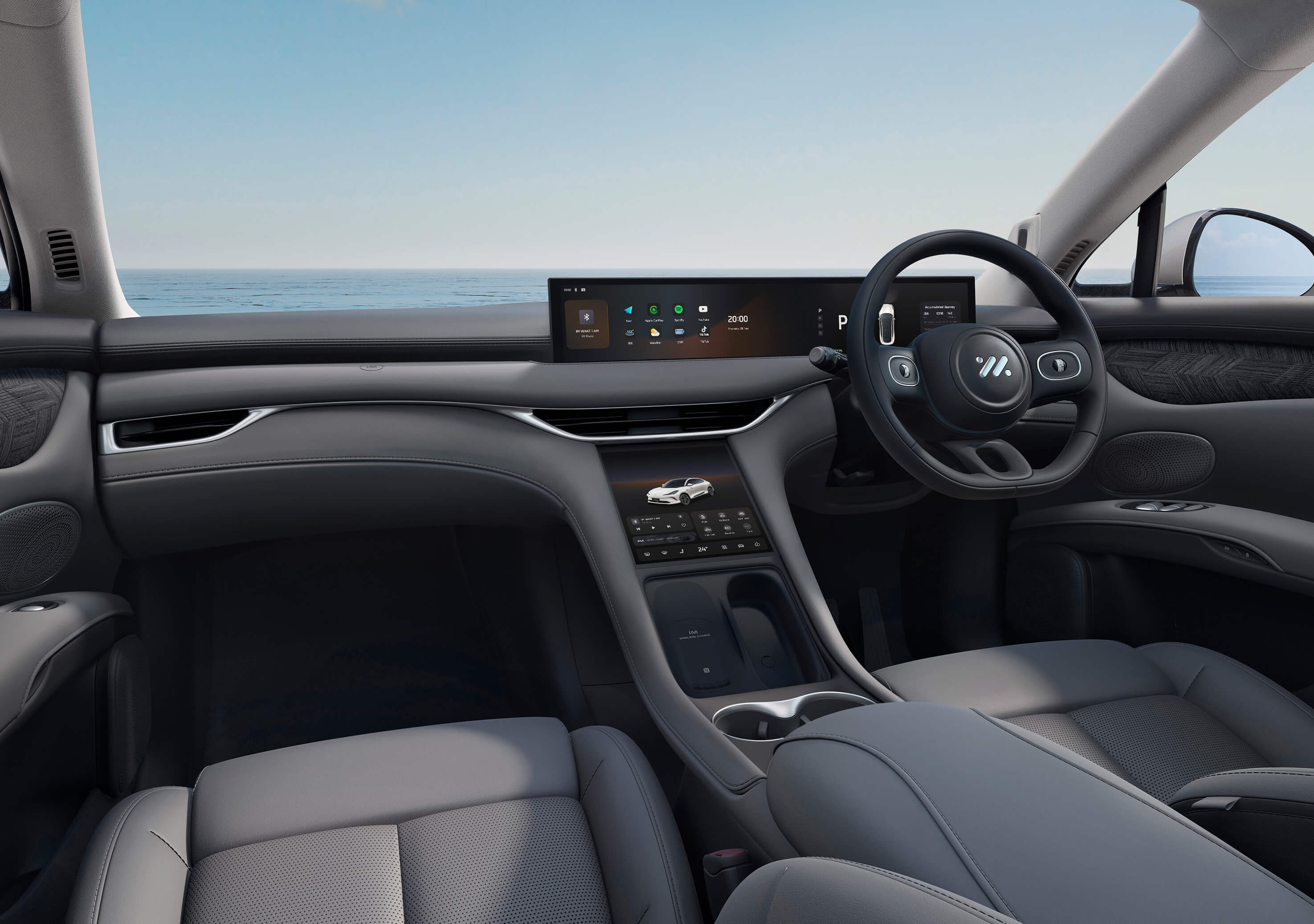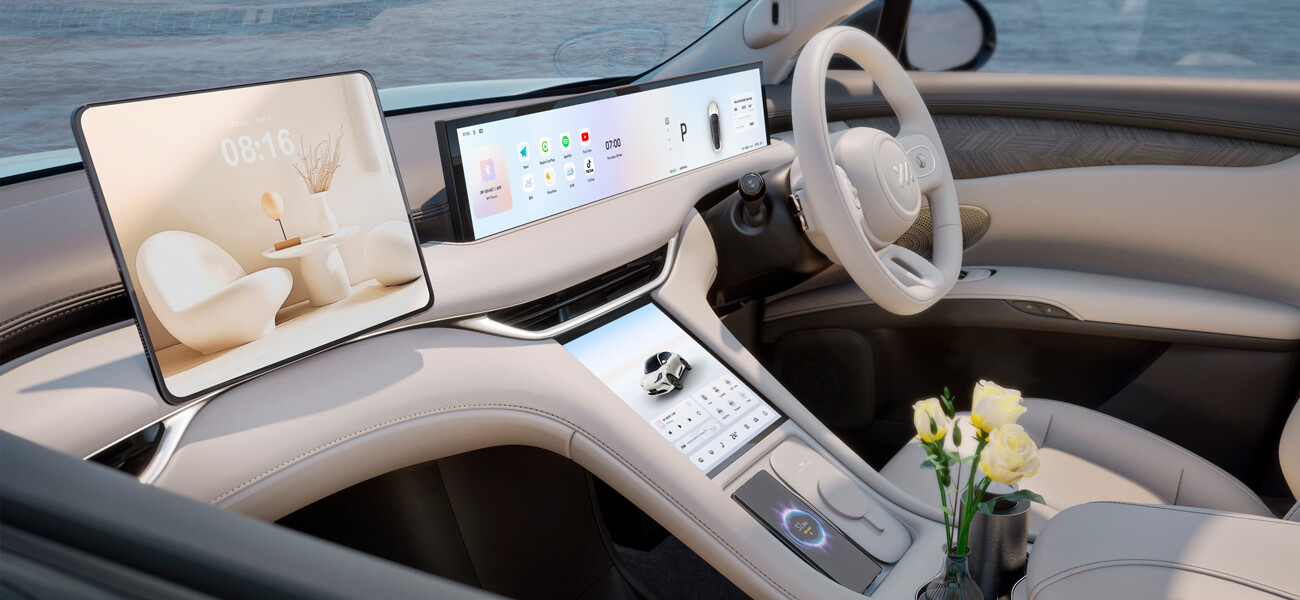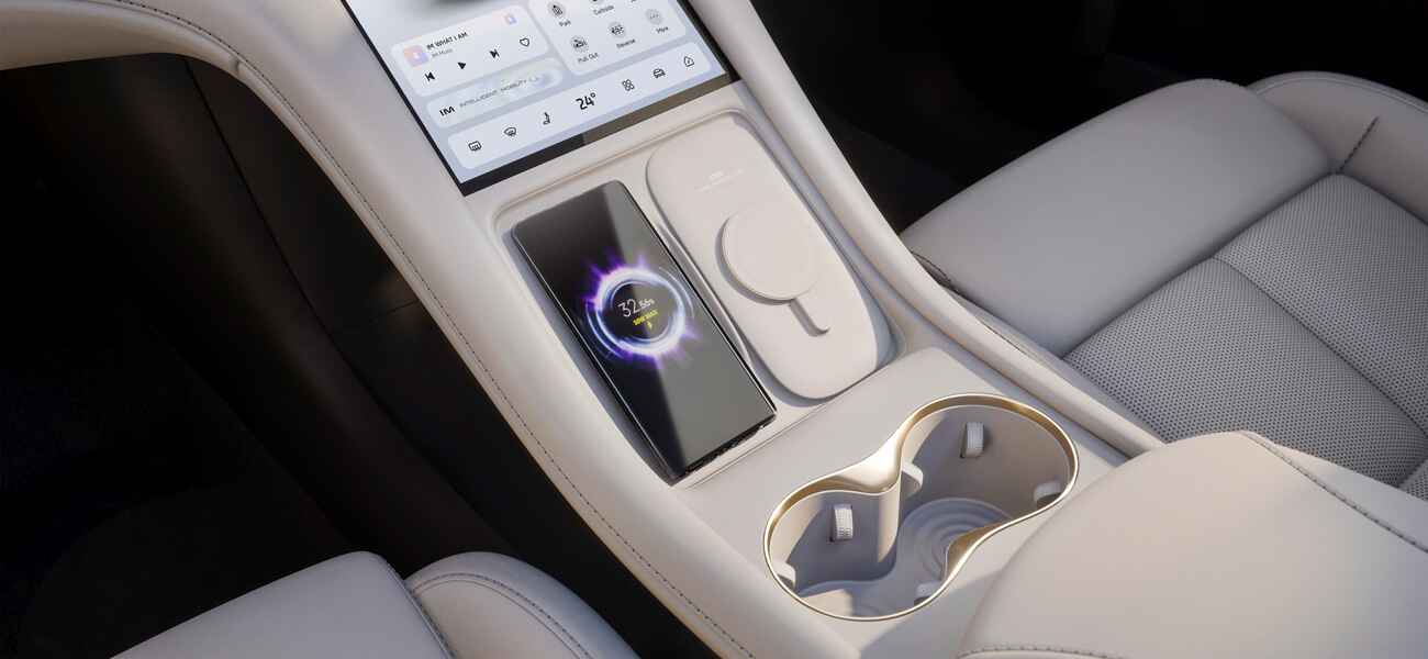 IM6 seamlessly integrates smart technology throughout its cabin. At its heart, the formidable Qualcomm Snapdragon ® 8295 chip is the driving force behind all key vehicle functionalities. IM6 features a crisp 10.5" central touchscreen and immersive 26.3" infotainment display, bringing wireless Apple Carplay® and Android Auto™ to life. For added convenience, a dedicated ventilated wireless charging mat allows your mobile device to charge on the go.