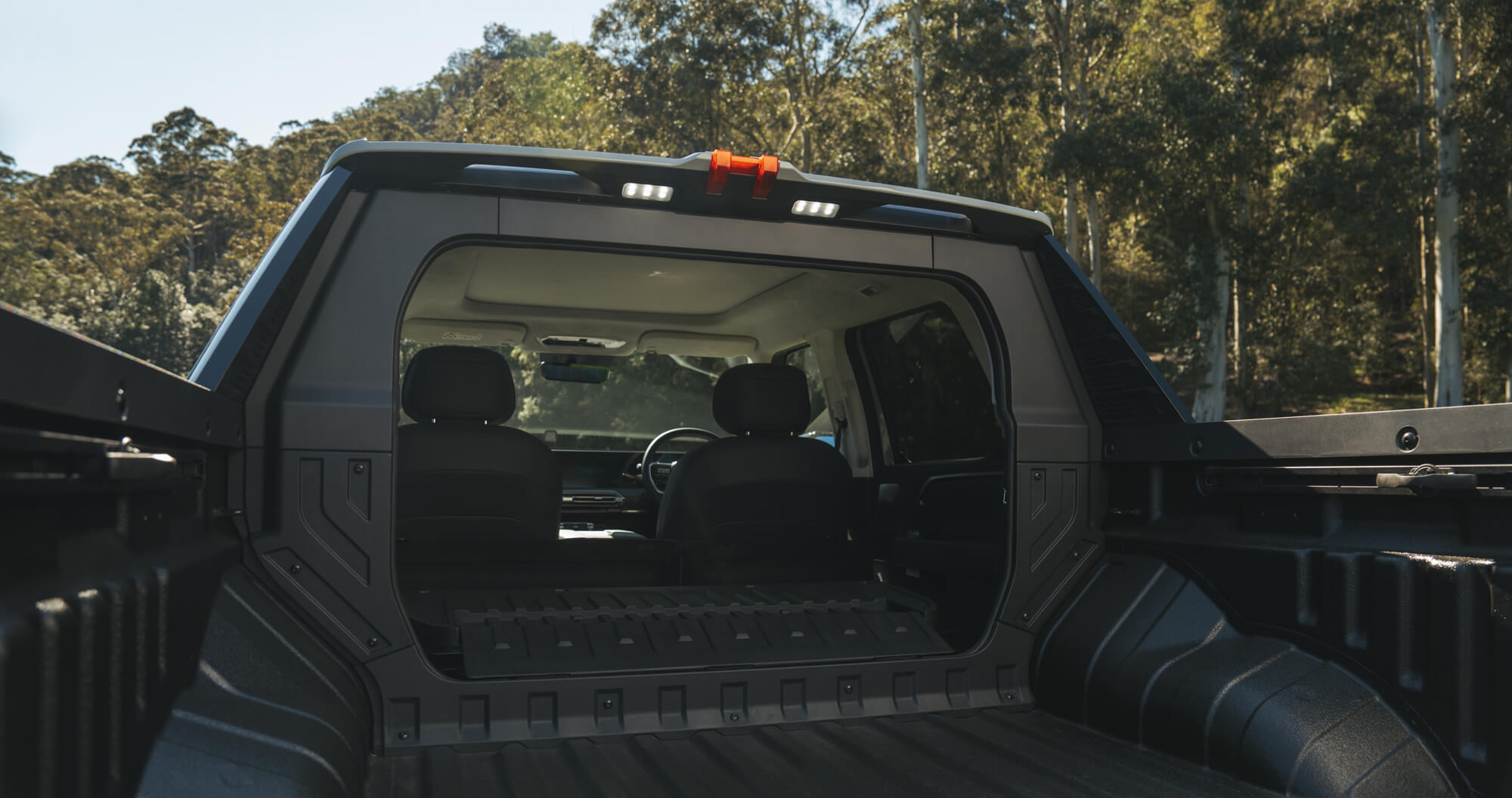 Unlock up to 1,600L of space and carry cargo up to 2.4m* long with the Smart Hatch Midgate - Seamlessly connecting the cabin to the tub to create one continuous space for oversized gear or the ultimate tailgate setup. Available on the Explore Pro variant as an add-on option.